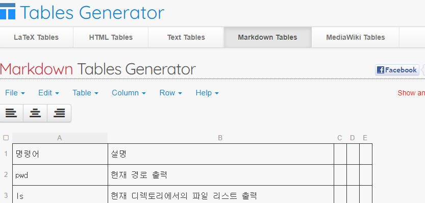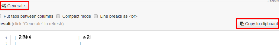 Tables Generator 사이트를 통해 보기 쉽게 틀을 만들 수 있다.
