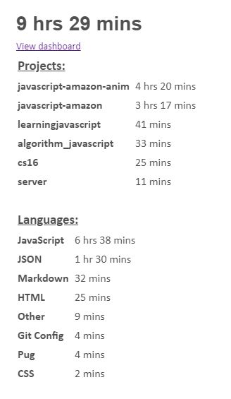 반응형 [WakaTime] VSCode 사용량 (2020년 2월 3주) 일주일 간 사용 시간: 9시간 29분 가장 많이 쓴 언어: Javascript (6시간 38분) 반응형 공유하기 게시글 관리 개발후라이 저작자표시 (새창열림)
