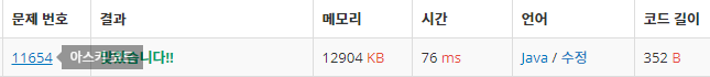입력으로 주어진 글자의 아스키 코드 값을 출력한다.