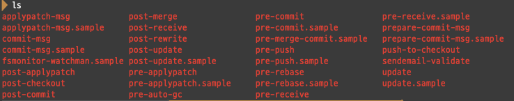 - hooks를 조회화면 하나의 이름에 두 파일씩 있습니다. 같은 이름으로 확장자가 .sample 인 파일과 확장자가 없는 파일이 있는 것입니다.