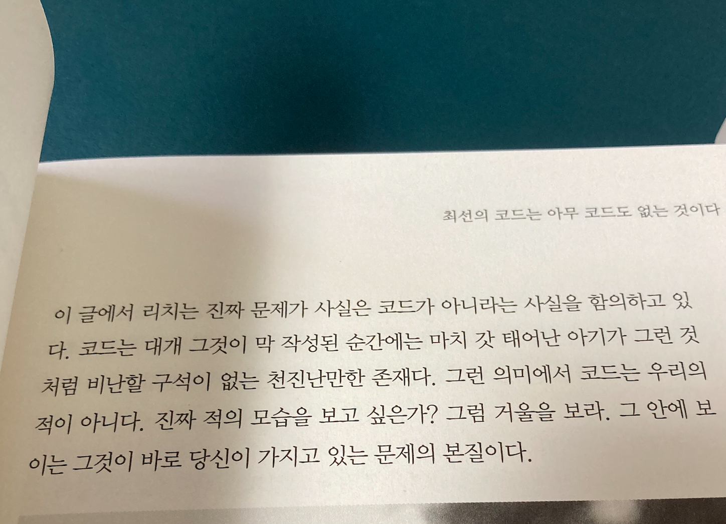 코드는 우리의 적이 아니다. 진짜 적의 모습을 보고 싶은가? 그럼 거울을 보라.